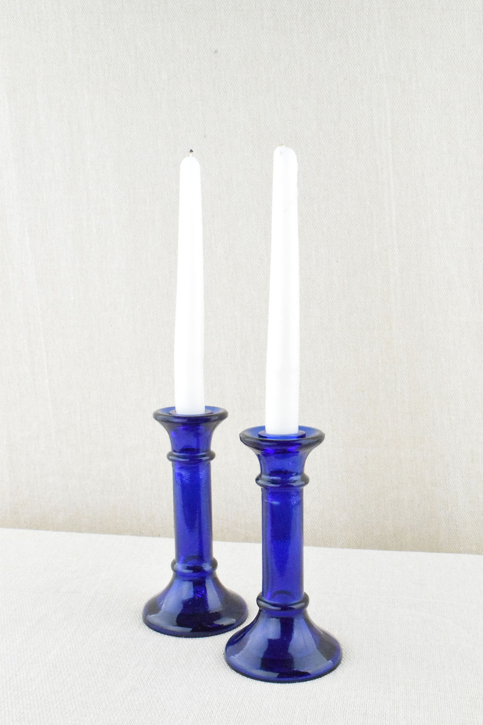 Pair of Blue Glass Candlesticks